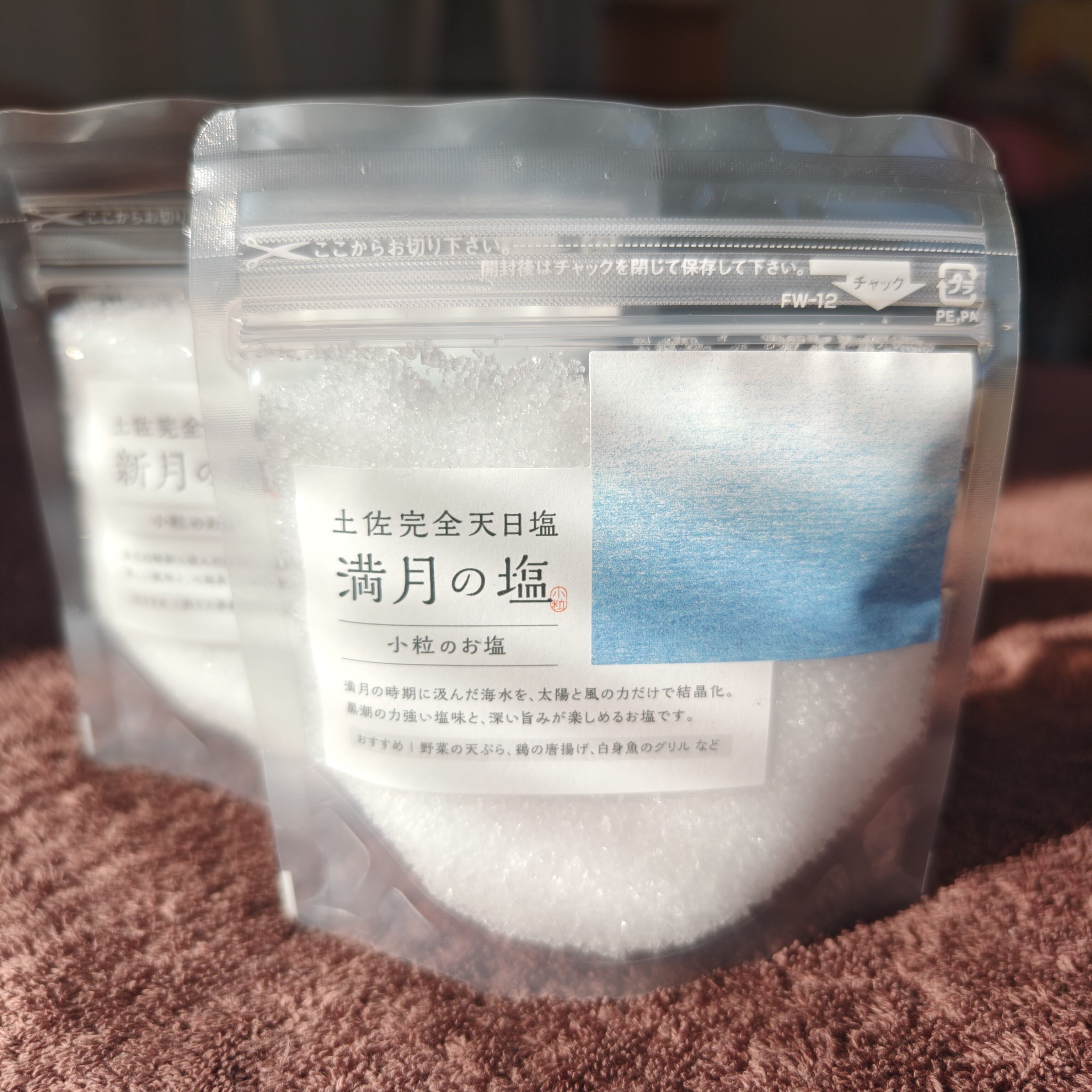 毎日の食卓に、これまでにない特別なひと匙を添えてくれるのが「土佐完全天日塩 新月の塩・満月の塩」です。このお塩は、自然の力強さを感じながら作られた、土佐地方の伝統的な製法で丁寧に製造されています。